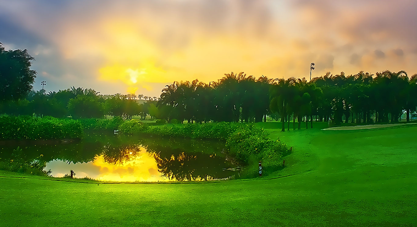 レイク(Lake)コース: ほぼ全てのホールに池が絡む、美しくもスリリングなコース。フェアウェイが比較的タイトで、正確なショットコントロールがスコアメイクの鍵となります。